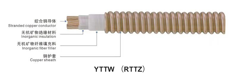 YTTW系列金屬護(hù)套無(wú)機(jī)礦物絕緣電纜是由本公司研制成功的重大科技創(chuàng)新產(chǎn)品。采用先進(jìn)的生產(chǎn)工藝,全自動(dòng)機(jī)械化生產(chǎn),產(chǎn)品質(zhì)量可靠。產(chǎn)品屬?lài)?guó)內(nèi)外首創(chuàng),有自主知識(shí)產(chǎn)權(quán)。產(chǎn)品結(jié)構(gòu)先進(jìn),導(dǎo)體采用多股銅絞線,阻抗小、載流量小、柔軟性好;絕緣采用耐高溫(1100℃以上)無(wú)機(jī)礦物絕緣帶機(jī)械繞包,絕緣層緊密均勻、耐潮濕、柔性好;護(hù)套采用銅護(hù)套(耐高溫1083℃),經(jīng)連接軋紋,散熱快,能彎曲。RTTZ電纜是2017年國(guó)家標(biāo)準(zhǔn)GB/T34926-2017 《額定電壓0.6/1KV及以下云母帶礦物絕緣波紋銅護(hù)套電纜及終端》發(fā)布后,由YTTW電纜重新命名而來(lái)。